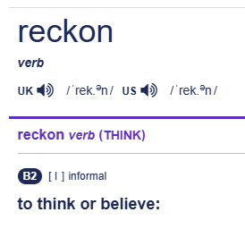 reckon의 사전적 뜻 (Cambridge Dictionary 참조)